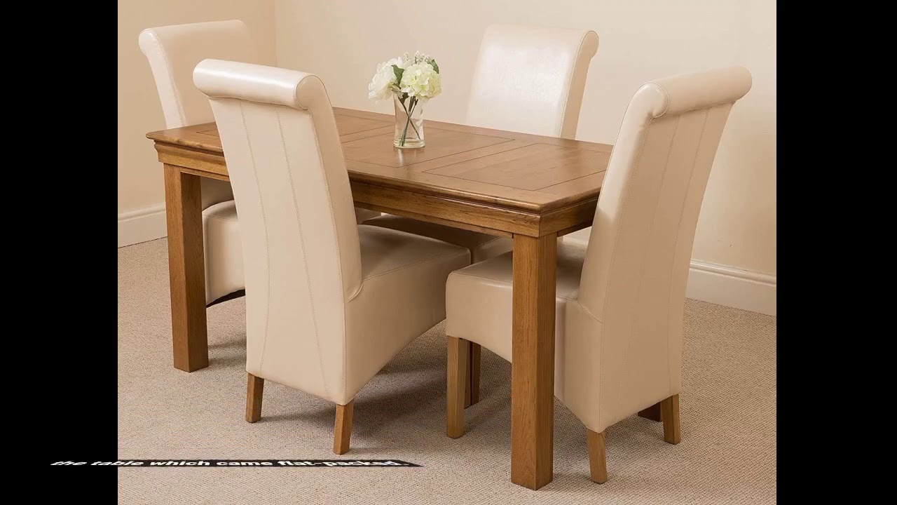 – OAK FURNITURE KING French Rustic 150 x 75 cm Dark Oak Dining Table and 4 Chairs Dining Set with Montana Ivory Leather Chairs