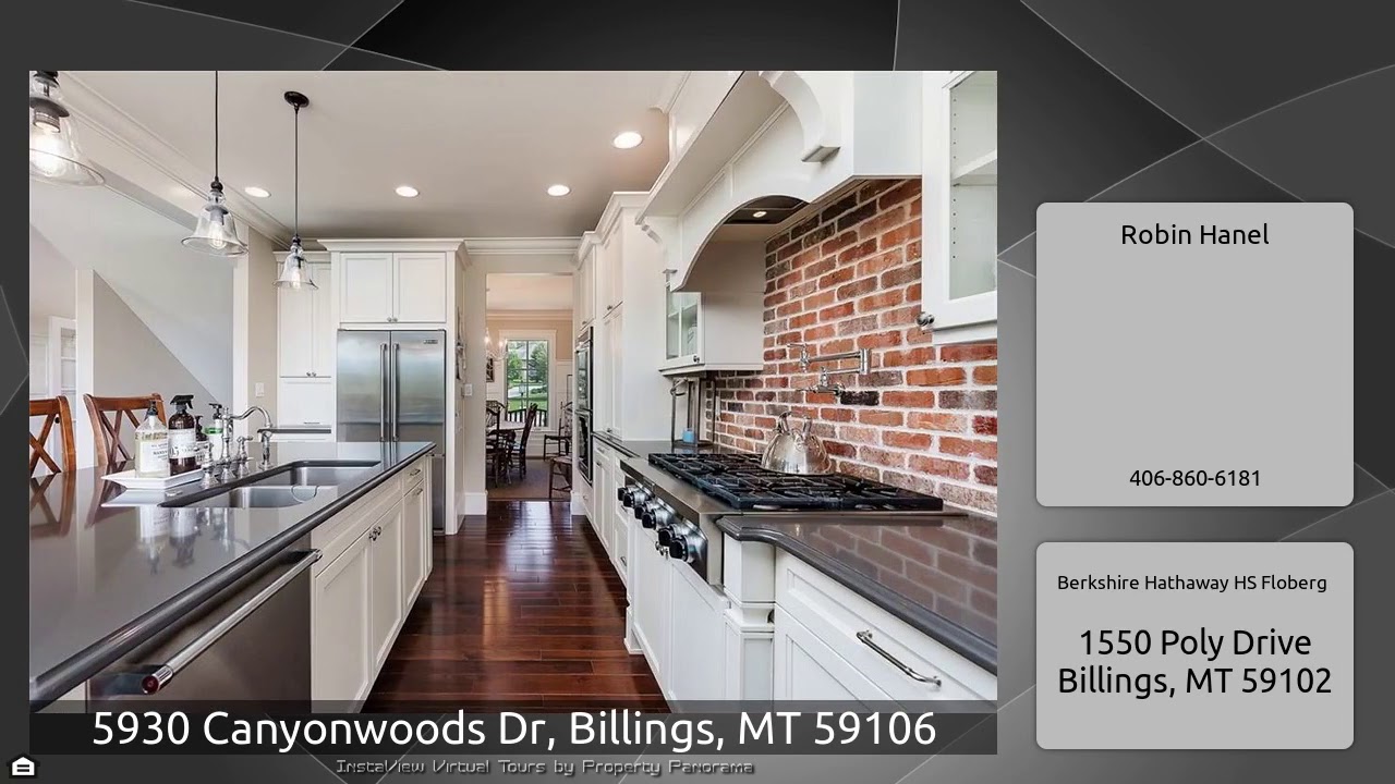 The Virtual Tour for the property at 5930 Canyonwoods Dr, Billings, MT 59106 listed for $779,900: Other homes for sale by Robin Hanel of Berkshire Hathaway HS Floberg: Exceptional one owner Cape Cod home welcomes you with curb appeal and warmth. First impressions begin with prestigious open staircase, hickory flooring, high ceilings, exceptional crown molding, brick accents and quality finishes throughout. Main level offers elegant formal dining, classic den with gas fireplace and bookshelves, incredible gourmet kitchen, casual dining and formal living with gas fireplace and French doors to …