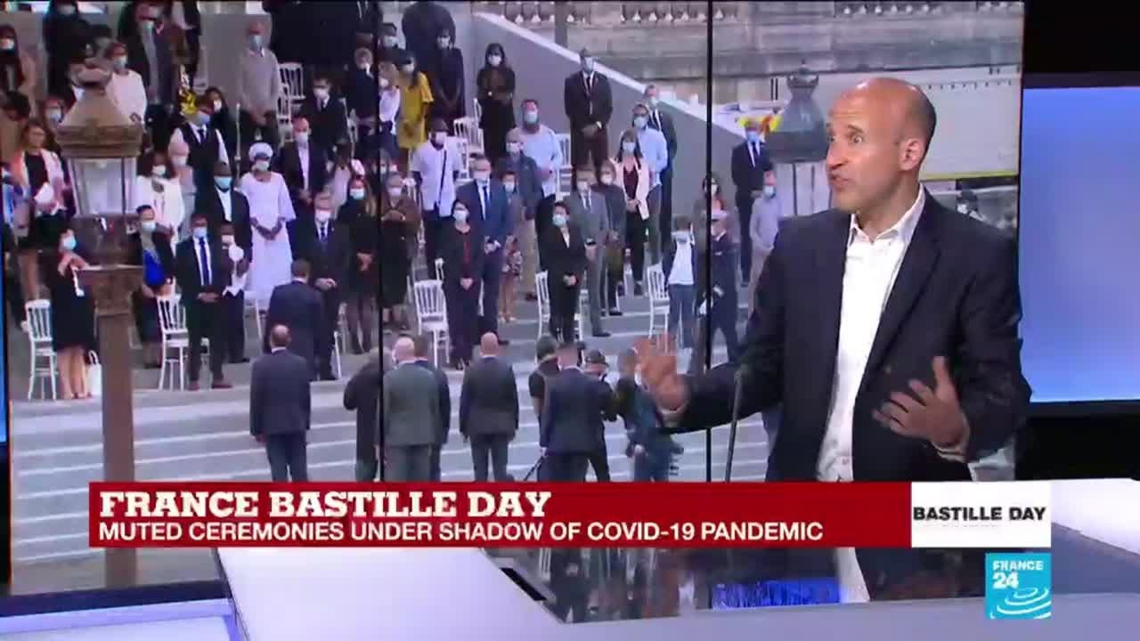 France celebrates Bastille Day in a scaled-down version with no parade in the Champs Élysées, but rather with a ceremony in Place de la Concorde, focusing on workers who fought the coronavirus pandemic in the front line. French president Emmanuel Macron is to give a special interview today and “he should give a lot of answers”, as FRANCE 24’s Douglas Herbert says.