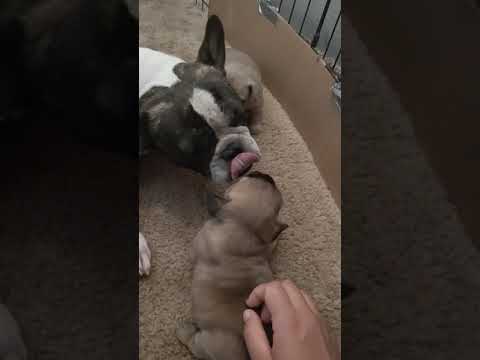 Olive and Bruno’s 3rd naturally conceived litter. 2 Brindles (1 male, 1 female) and 2 fawns (1 male, 1 female). Born 6/22/20. Available for rehoming on 8/22/20. Puppies now available for reservation at winecountrybulldogs.com. Reserve yours today!