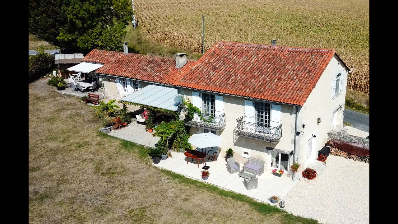 Wonderful charming stone built country residence, tastefully renovated and decorated. Family home with 3 bedrooms, 3 bathrooms, large kitchen, lounge, dining room, in-ground 10x5m pool, outside home bar, large covered terrace and one bedroom gite/apartment. 4 km from St Severin, Riberac 19km. Airports & rail links. Angouleme (40 km), Bergerac Airport (80km), Bordeaux Airport (130km).