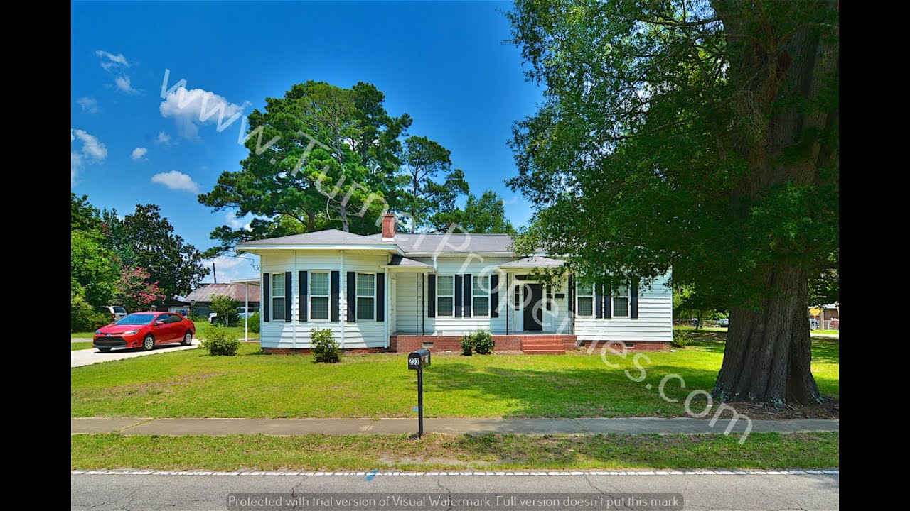 Charming 2 bedroom, 1 bathroom home in Batesburg-Leesville. Home sits on an over half-acre corner lot with mature trees. Front porch, covered entries, and driveway parking. High ceilings, hardwood floors, and ceiling fans, and three decorative fireplaces throughout. Chair rail molding in foyer and living/family room. Spacious dining room open to kitchen with bar counter and included electric stove, stainless steel dishwasher, and refrigerator. Formal living room/study with French doors and private entry from front porch perfect for a large bedroom or extra living space. Two additional bedrooms and a full bathroom with tub/shower. Enclosed rear porch/sunroom off kitchen has full-size washer-dryer connections. Just 5 minutes from shopping/dining, Walmart, and famous Shealy’s BBQ. Batesburg-Leesville (Lexington 3) schools.