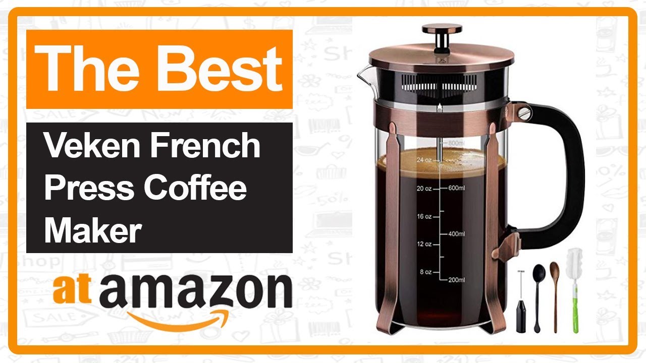 The Best Veken French Press Coffee Maker, now enjoy a quiet and peaceful coffee making experience with Veken French Coffee Maker. The Press is made of borosilicate glass, so it will not make a noise unlike metal presses which may generate unbearable scratching noises as you push the filter down. This coffee maker comes with double stainless steel screen filters help minimize the amount of residual grounds in your coffee. With Veken French Coffee Press features an exact scale line so you can prepare exactly the right amount of Coffee or Tea as you want.