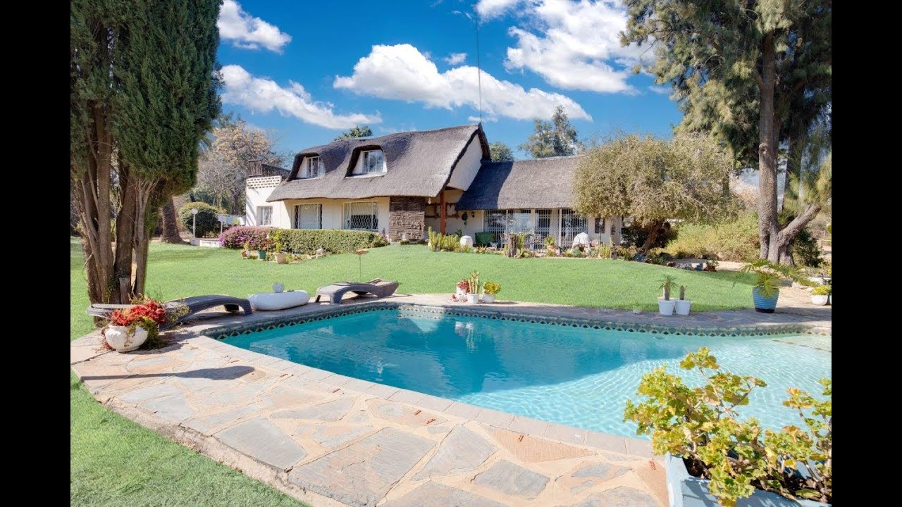 Has the following to offer: Main house has 3 bedrooms – 2 bedrooms and 2 ½ bathrooms on the ground level. Main bedroom upstairs with own shower and toilet – balcony leading outside on a patio for great views over the property and Kyalami. Light oak kitchen with electric stove and space for dishwasher. Dining room with French doors leading to patio. Large double volume thatch lounge with fireplace and sliding doors to the patio and pool area. Laundry area in the back. The house inter-leads (closed with dry walling) to cottage with 2 upstairs bedrooms and 1 bathroom en-suite. 1 downstairs study. Bathroom. Lounge. Dining room. Kitchen. 2nd cottage (still interleads) to a 1 bedroom en-suite / kitchen and lounge area. 3rd cottage 1 bedroom with bathroom. Separate downstairs laundry/or domestic quarters with shower and toilet. Double garage. Undercover slipway. Septic tanks. The property is ideal for rental income or the extended family. Also has ample space to erect stables and arenas. Access from 2 roads. Garden with lots of trees/no electric fencing.