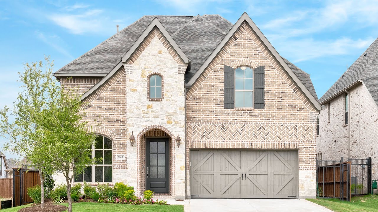 Take a breath of fresh air when you arrive in Lakewood, located in the Town of Prosper. This 2999 sq. ft. plan offers four bedrooms, three full bathrooms and one half bathroom. Cul-de-sac homesite. Library with French doors set at two-story entry. Open kitchen hosts inviting island with built-in seating space. Two-story dining area opens to two-story family room with wall of windows and wood mantel fireplace. Designer tile floors throughout. First-floor master suite includes bedroom with wall of windows. Dual vanities, garden tub, separate glass-enclosed shower and two walk-in closets in master bath. A guest suite with private bath is downstairs. Two secondary bedrooms, a game room and media room with French doors are upstairs. All bedrooms include walk-in closets. Covered backyard patio. Mud room off three-car garage. #perryhomes #perryhomesdallas