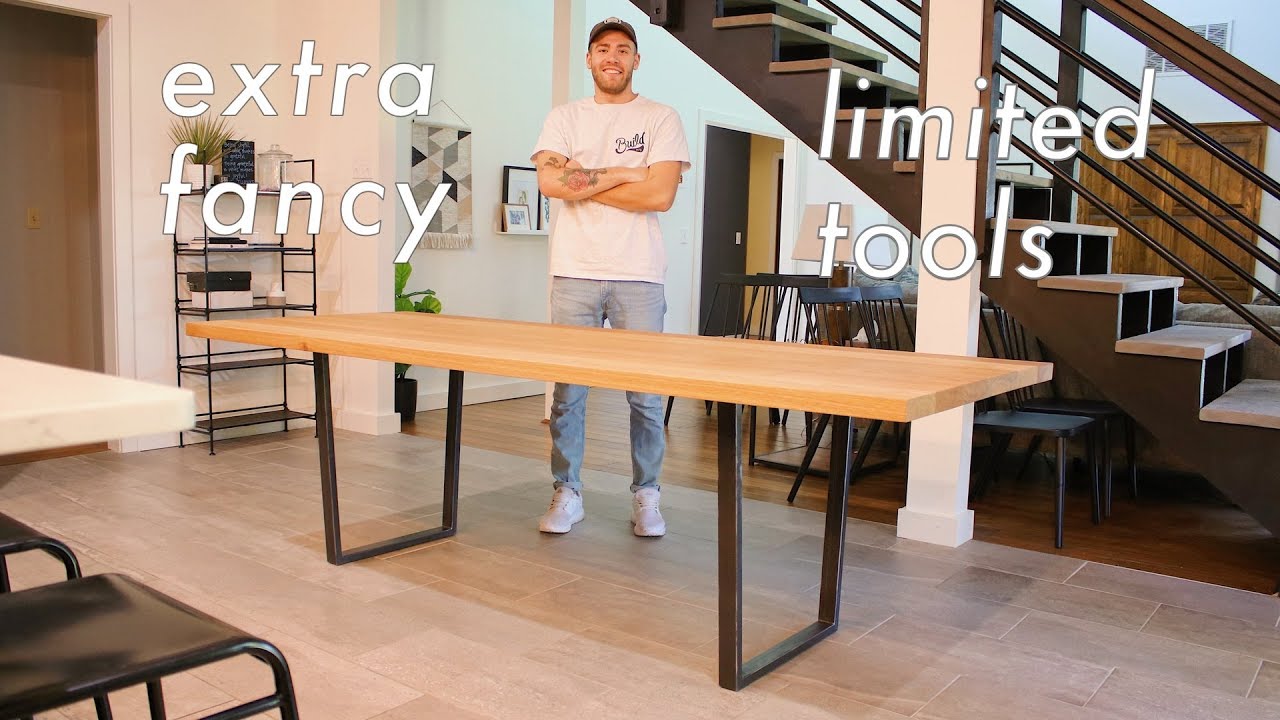I recently got a commission from a local client to build a custom Dining Table top for a set of pre-fabricated steel legs they had previously bought on Etsy. I went to my local lumber supplier and got pre-surfaced 1.75″ thick white oak to build everything out of. I spent $350 on materials and only used 3 power tools: The circular saw, Drill/Driver, and Belt Sander. “Nice projects don’t require tons of tools.” This is something I say all the time… practice what you preach.