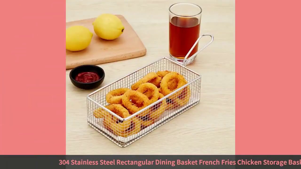 #304 Stainless Steel Rectangular Dining Basket French Fries Chicken Storage Basket Creative Kitchen Household Items
