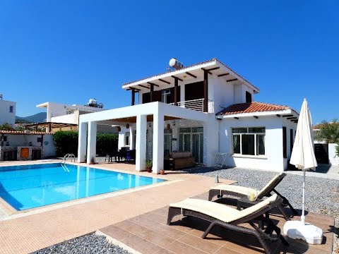 Situated in a popular area of Esentepe, this beautiful 4 bedroom villa boasts everything you could ever want in a home! From a large crystal blue swimming pool, a spacious covered terrace with summer sofas and dining table and chairs, to your very own poolside bar…just perfect for a summer’s evening shindig! Downstairs you have an open plan lay-out; the spacious kitchen is cleanly designed and finished with quality materials and white goods and the living/dining area has a wood burner and French windows leading to the pool area. You also have three bedrooms downstairs, 2 with ensuite bathrooms while the master bedroom is upstairs; this lovely bedroom is bright and spacious, has an ensuite and terraces to both sides of the room, which gives sea & mountain views. The garden is low maintenance, with lemon, peach and palm trees and you are also just a short stroll to the sea. Esentepe Village is 5 minutes drive away, the Korineum Golf Course and Beach Resort a 2 minute drive and the historical Kyrenia Harbour with many shops, bars and restaurants is 20 minutes drive. All in all, a fantastic home, in a fantastic location and a fantastic price!