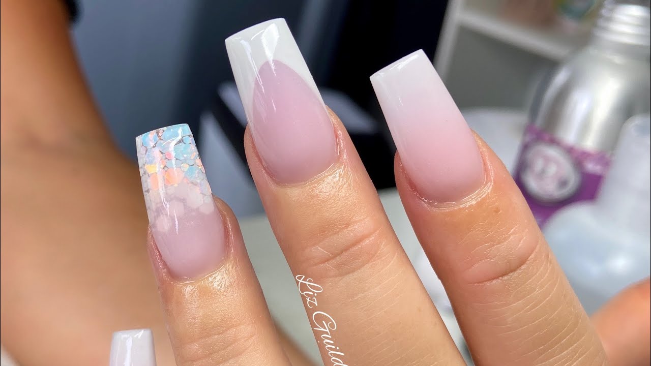 ACRYLIC – CJP amor, coconut milk, crystal glass and tiara glitter – using the one monomer and Liz guild brush