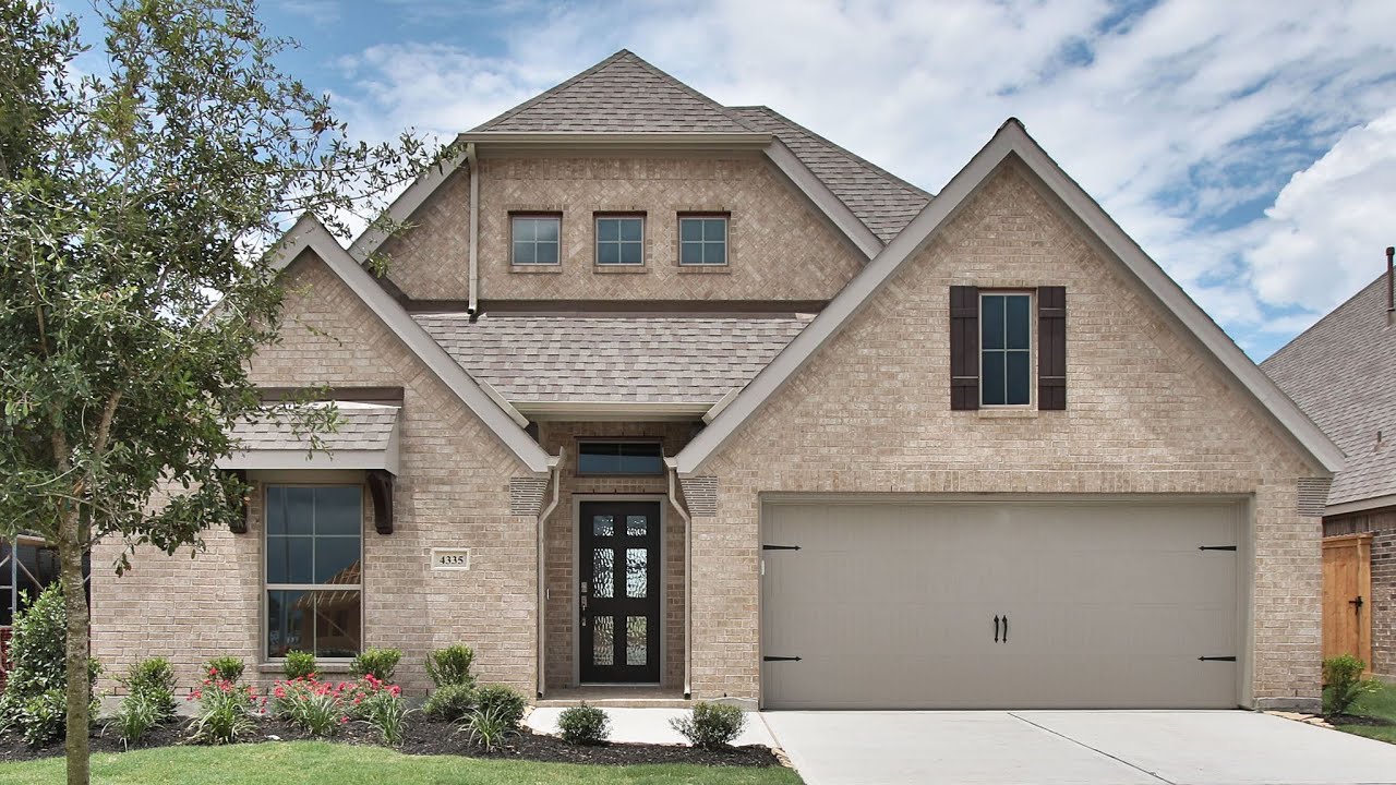 Named after a turn-of-the-century local founding family, Del Bello Lakes is a perfect location to build your own life story. This 2574 sq. ft. plan offers four bedrooms, three full bathrooms and one half bathroom. Library with French doors set at entry with 12-foot ceiling. Coffered extended entry leads to open family room, kitchen and dining area. Ceramic tile floors throughout. Family room features wall of windows. Kitchen features corner walk-in pantry and generous island with built-in seating space. Master bedroom highlights 12-foot ceiling and wall of windows. Double doors lead to master bath with dual vanities, garden tub and separate glass-enclosed shower with two entries that lead to separate walk-in closets. A guest suite with private bath adds to this one-story home. Covered backyard patio. Mud room off two-car garage. #perryhomes #perryhomeshouston #delbellolakes