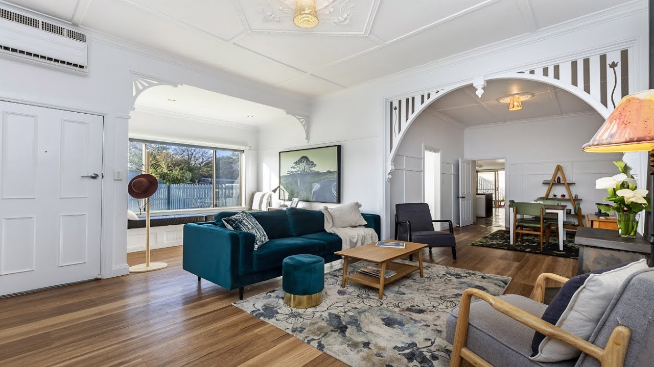 Offering 3 bedrooms, a large lounge with gas heater, floating floors, high ceilings with elegant ceiling roses, neutral colour tones, a window seat and lovely French doors. There are also day/night blinds and screens for privacy. Flowing on from the lounge and dining, is a new designer kitchen with pressed tin splash back, stone bench tops with a breakfast bar and second dining space with gorgeous light fittings.