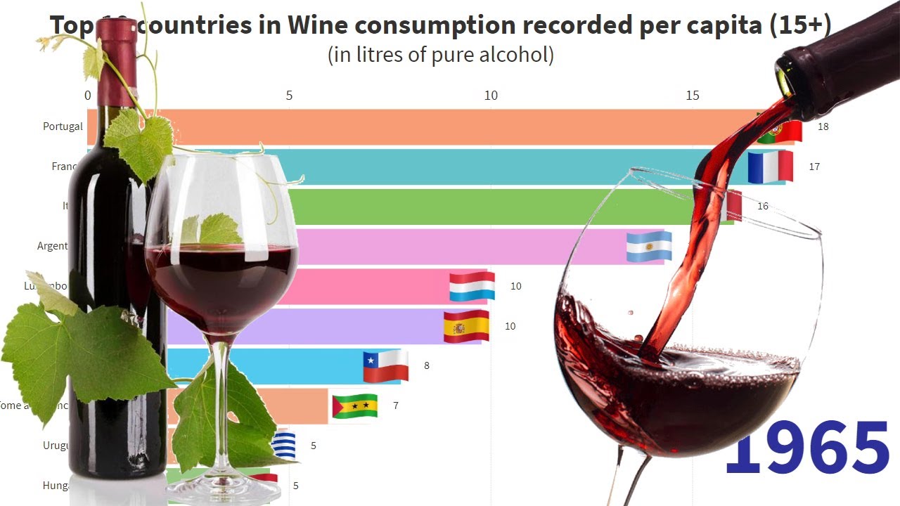 This video is on top 10 countries in the world in wine consumption (in liters per capita), in other sense where most wine is drunk? The comparison is made from 1960 to 2014, the last data available.
