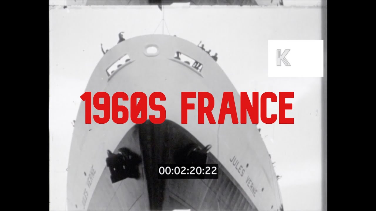 1960s France, Sea Launch of Jules Verne Ocean Liner, Champagne Bottle Thrown Against Hull, 16mm from the Kinolibrary Archive Film Collections. Clip ref KLR1157. For commercial projects only. To order the clip clean and high res, or to find out more, visit Available in 2K.