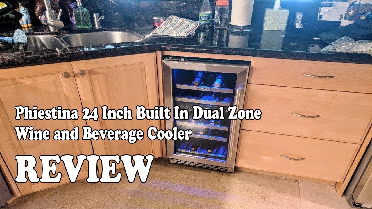 Phiestina 24 Inch Built In Dual Zone Wine and Beverage Cooler with French Door
