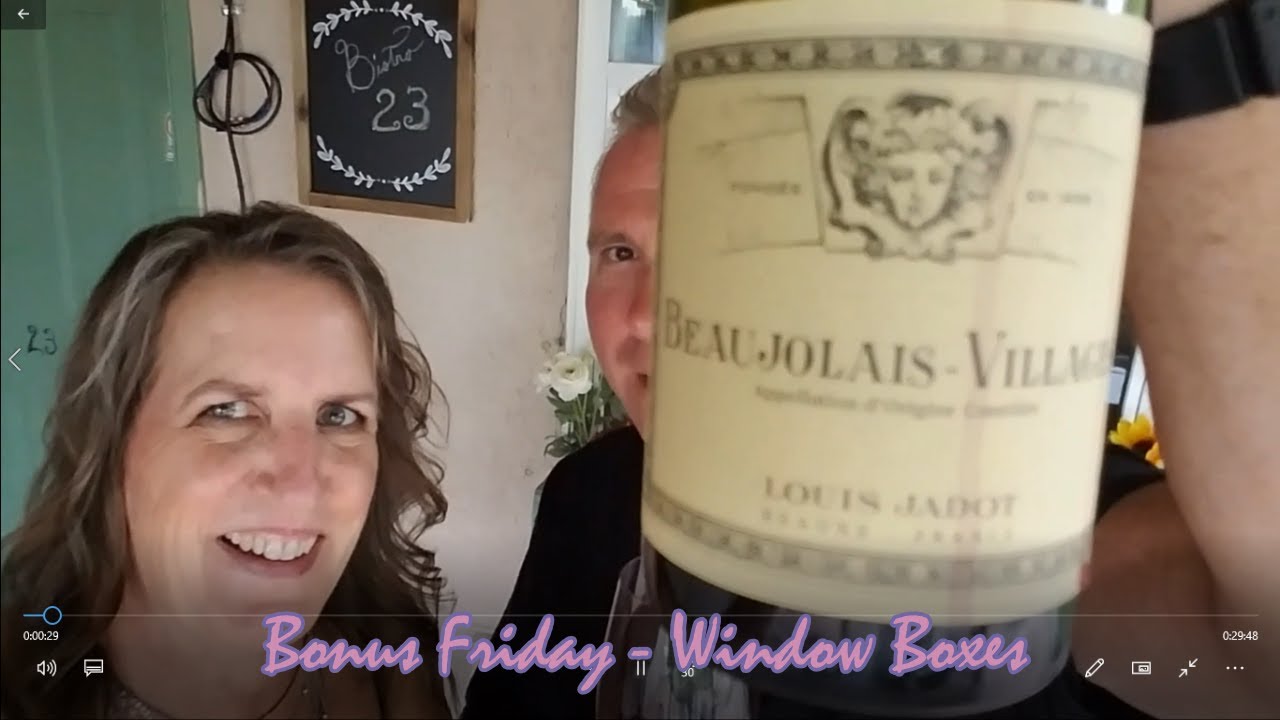 Hey all. Bonus Friday here. Want to make a lovely window box? Check this out. And enjoy a lovely French wine. Beaujolais Villages, 100 Gamay grape. BonusBoxFranceFrenchfrench wineFridayVideoVlogWINDOWWineYouTube