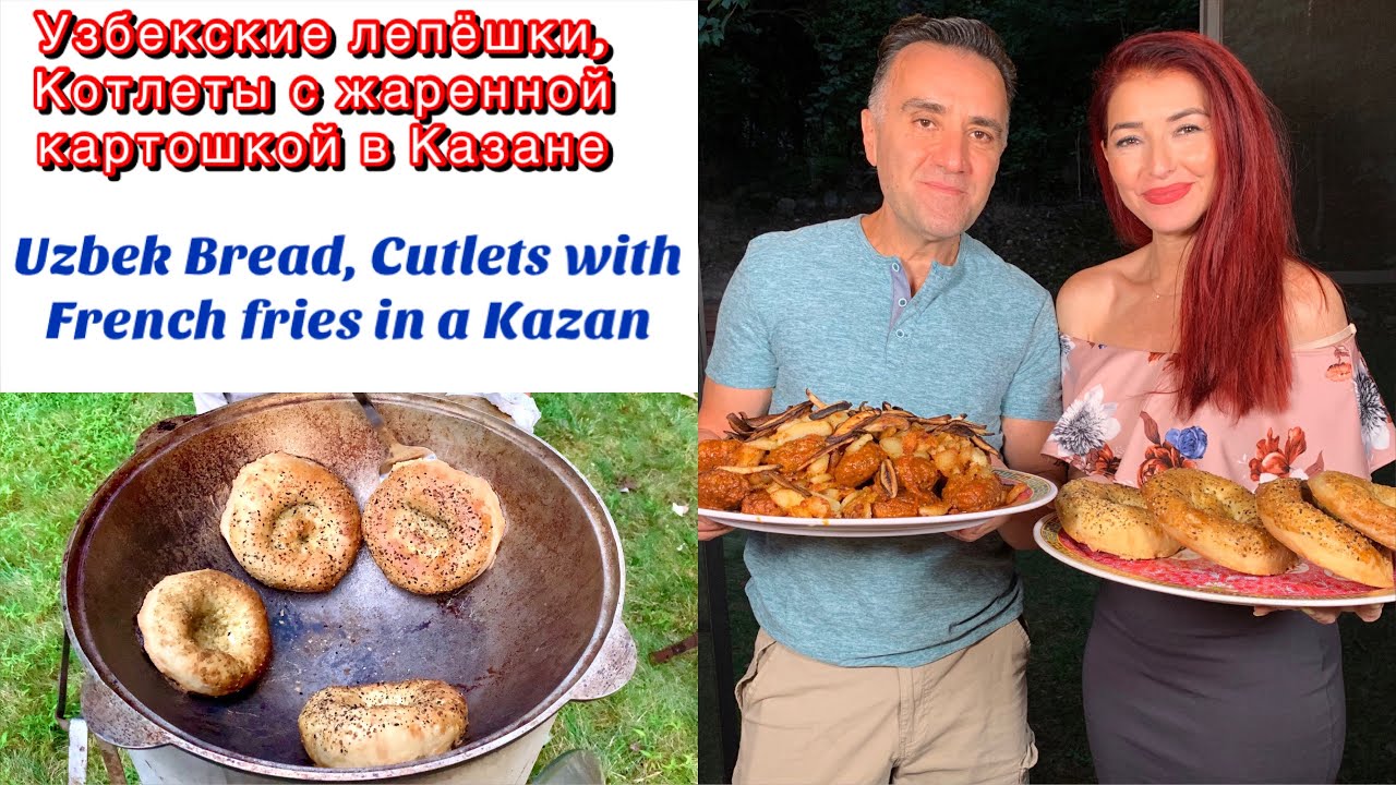 Uzbek Bread, Cutlets with French fries in a Kazan / Узбекские лепёшки, Котлеты с жаренной картошкойa в Казане