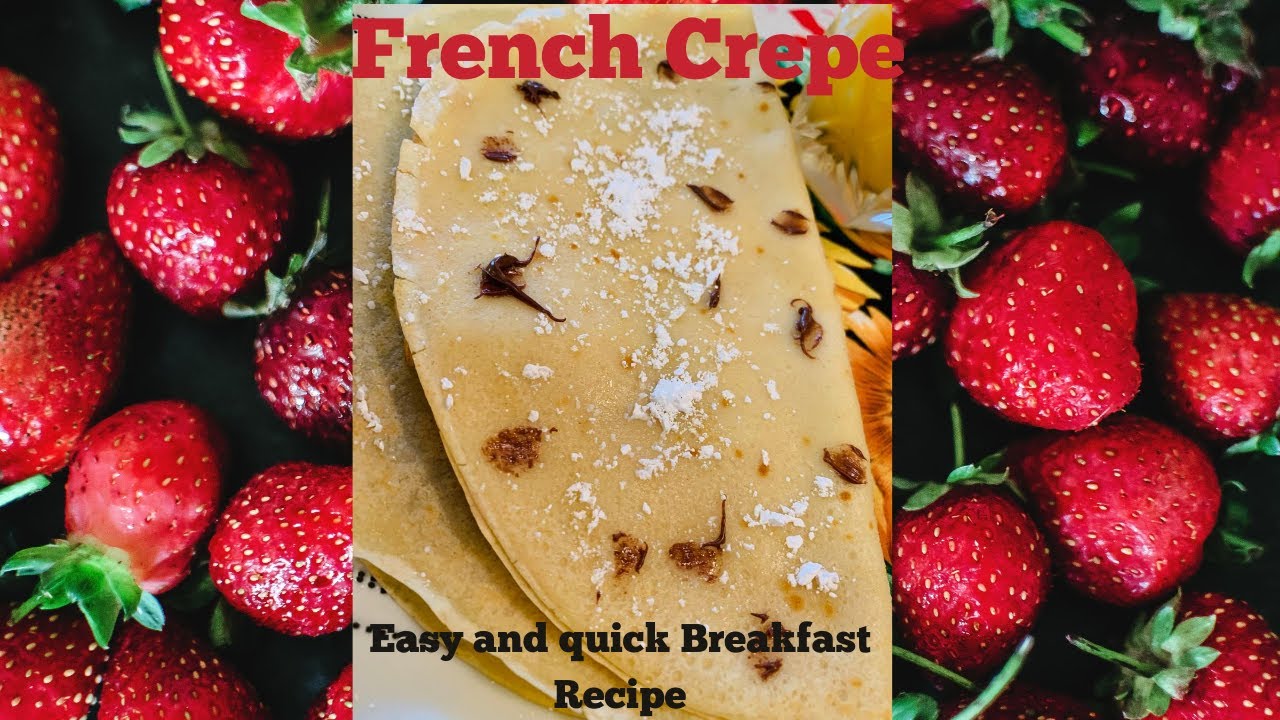 Crepes are one of the most delicious and easy recipes you can serve for breakfast. It is full of health benefits! Kids love to eat crepes for breakfast. The recipe is simple and can be made with easily available ingredients usually found in one’s pantry. French crepes may also be considered a type of thin/flat French pancake and can be made and filled with sweet or savory ingredients. These crepes may be eaten with Nutella, strawberries, bananas, any other fruit of your choice, or a sweet cream filling with fruit, as used in this recipe. To make a savory crepe one may leave out the vanilla and sugar and fill the crepe with a creamy gravy of mushroom, eggs and ham, or chicken, for a breakfast crepe.