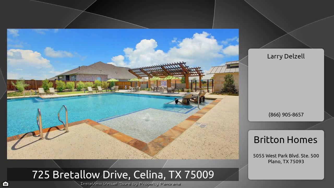 The Virtual Tour for the property at 725 Bretallow Drive, Celina, TX 75009 listed for $399,900: Other homes for sale by Larry Delzell of Britton Homes: PERRY HOMES NEW CONSTRUCTION! Extended entry with 13-foot ceiling leads to open kitchen, dining area and family room. Kitchen offers generous counter space, corner walk-in pantry and inviting island with built-in seating space. Dining area flows into family room with a cast stone fireplace and a wall of windows. Game room with French doors just across from kitchen. Primary suite includes double-door entry to master bath with dual vanities, …