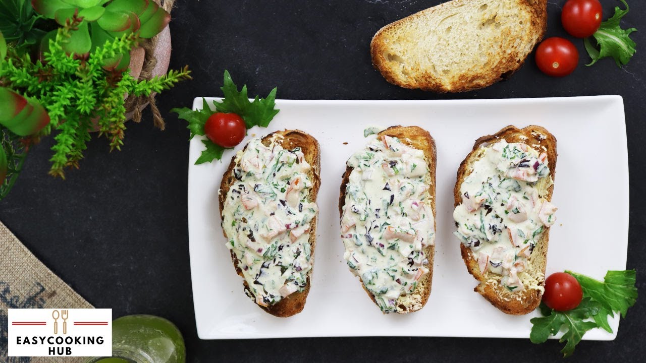 How to make Creamy Bruschetta with home made fresh french dressing recipe with easy cooking hub.