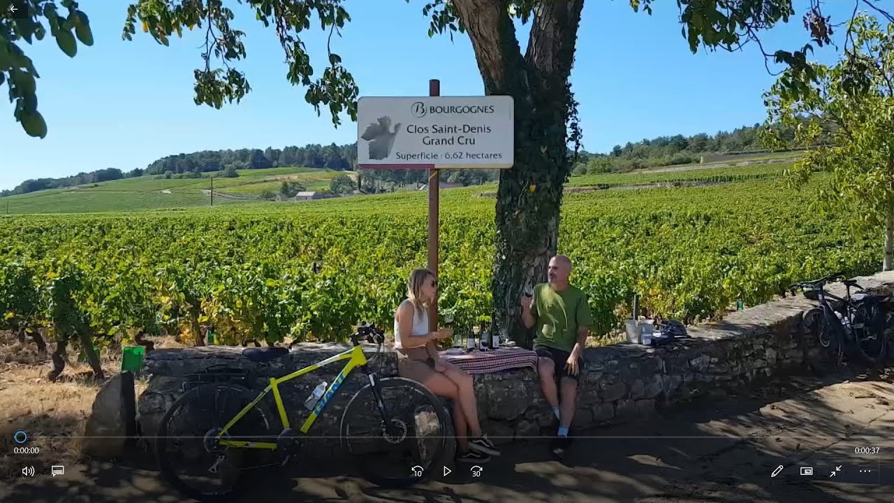 In which a grand cru vineyard serves as a beautiful backdrop for a wine tasting while cycling in the Côte de Nuits wine region of Burgundy, just south of Dijon. With thanks to Ludwig Dagoreau/Vélo Vitamine, velovitamine.fr, and to Claire. A France Revisited Moment by Gary Lee Kraut, www.francerevisited.com. (c) 2020. All rights reserved.