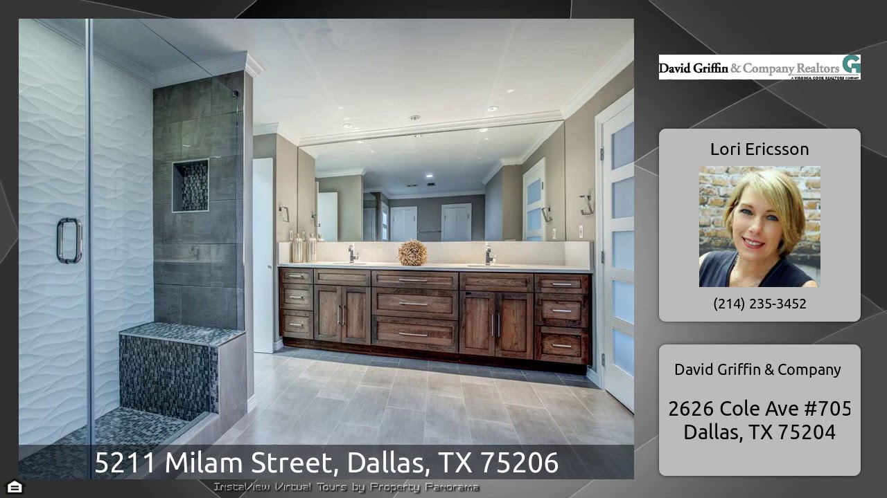 The Virtual Tour for the property at 5211 Milam Street, Dallas, TX 75206 listed for $5,000: Other homes for sale by Lori Ericsson of David Griffin & Company: French inspired home was extensively remodeled using bespoke materials throughout the spacious floor plan. Enjoy a vibrant residential neighborhood while being able to walk to restaurants, bars & retail shops. Plenty of room to entertain in this executive home with resort style pool, gourmet kitchen, multiple living areas, private dining room & library. Second floor master suite features spa inspired bathroom w-Spanish porcelain tile. …