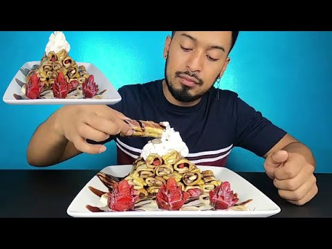 French Toast Rolls “Frenchie Rolls” with Nutella filling, Banana, Strawberry, Dipped in Egg mix, see video for Recipe Steps.