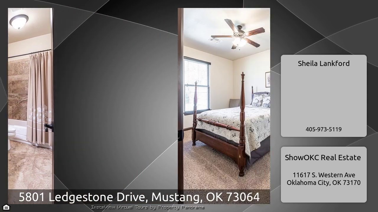 The Virtual Tour for the property at 5801 Ledgestone Drive, Mustang, OK 73064 listed for $319,572: Other homes for sale by Sheila Lankford of ShowOKC Real Estate: IMMACULATE! 3 Bed, 2.5 Bath w/ Study & Bonus Room! The beautiful entry w/ niche & signature rounded study wall enhance the charm of this home. Gorgeous ceiling treatment, stone fireplace & wood floors in the living room, make an evening at home inviting and relaxing. Open kitchen/dining boasts over-sized island, decorative back splash, granite, BI gas range, SS appliances & floor to ceiling custom cabinetry. The Study w/ french doors, …