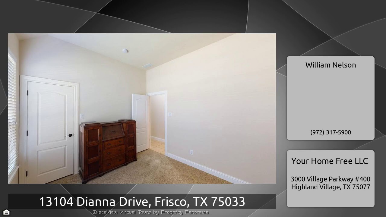 The Virtual Tour for the property at 13104 Dianna Drive, Frisco, TX 75033 listed for $425,000: Other homes for sale by William Nelson of Your Home Free LLC: Gorgeous 2-story in Christie Ranch has excellent drive-up appeal with a beautiful brick and stone elevation and immaculate landscaping! Inside you will find 3 bedrooms, 3.5 baths, formal dining area, executive study with French doors, and 2-car garage! Upgrades and amenities throughout include vaulted ceilings, decorative lighting fixtures, ceramic tiling throughout main living areas, sound system wiring, art niches, and MORE! Gourmet …