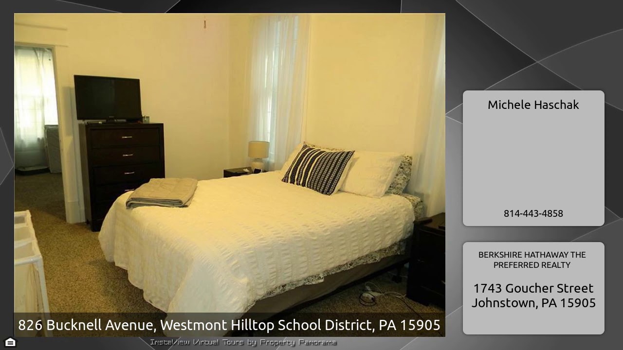 The Virtual Tour for the property at 826 Bucknell Avenue, Westmont Hilltop School District, PA 15905 listed for $109,000: Other homes for sale by Michele Haschak of BERKSHIRE HATHAWAY THE PREFERRED REALTY: Newer roof, furnace, drywall, carpets, & electrical. It has all the charm of the past and sophistication of today. A large front porch welcomes you to this 4 bedroom property. The hardwood floors have been refinished to their original beauty & lead from the foyer, through the living and dining room to the kitchen. French doors separate the living room from dining room. Stainless appliances …