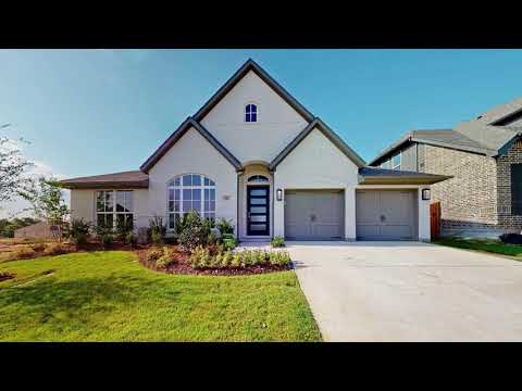 Reserve at Creekside is just five miles from the vibrant city of Denton where you can find a mecca of great food, arts and entertainment. This 2888 sq. ft. plan offers four bedrooms and three full bathrooms. Home office with French doors set at entry. Formal dining room off coffered extended entry. Family room with wall of windows and wood mantel fireplace opens to kitchen and morning area. Kitchen features inviting island with built-in seating space. Primary suite includes primary bath with dual vanity, garden tub, separate glass-enclosed shower and two walk-in closets. A guest suite and game room with French doors add to this four-bedroom home. Extended covered backyard patio. Two-car garage. #perryhomes