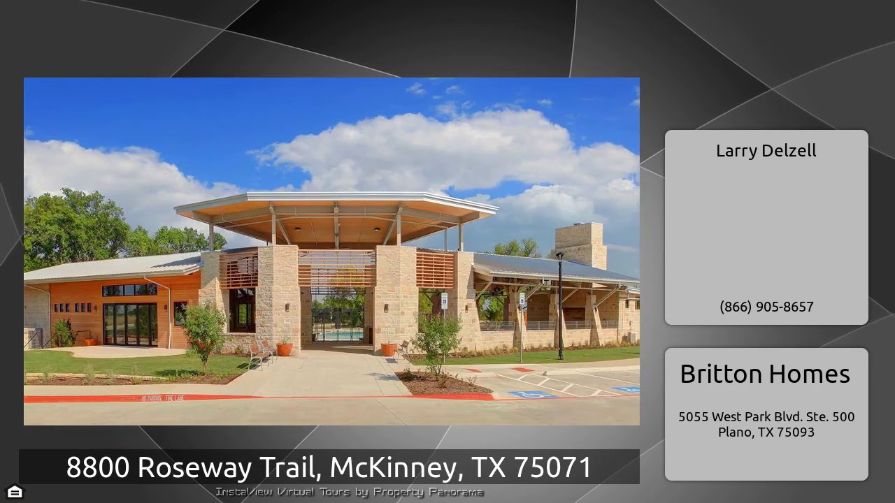 The Virtual Tour for the property at 8800 Roseway Trail, McKinney, TX 75071 listed for $474,900: Other homes for sale by Larry Delzell of Britton Homes: PERRY HOMES NEW CONSTRUCTION! Entry highlights 11-foot ceiling. Wood-look tile is featured in the entry, kitchen, dining area and family room. Game room with French doors off extended entry with 12-foot ceiling. Spacious family room with wall of windows and cast stone fireplace opens to kitchen and dining area. Kitchen hosts large island with built-in seating space and quartz countertops. Master suite includes bedroom with 12-foot ceiling. …