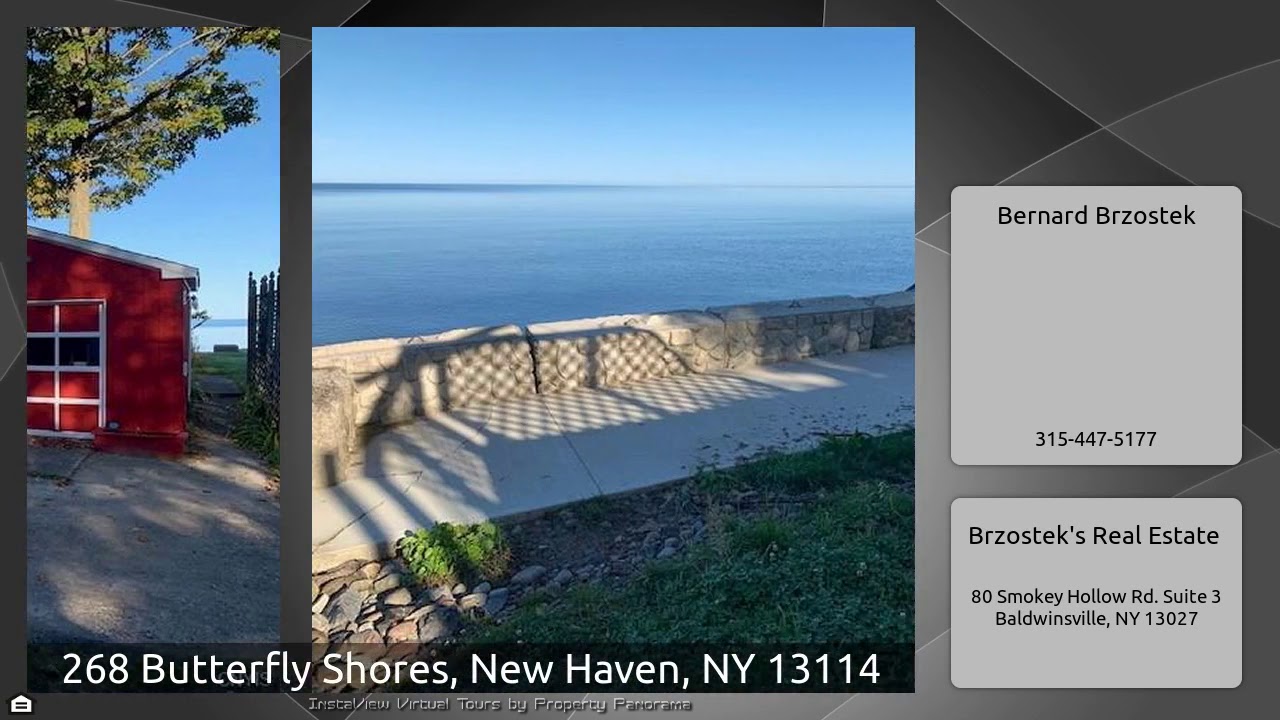 The Virtual Tour for the property at 268 Butterfly Shores, New Haven, NY 13114 listed for $147,900: Other homes for sale by Bernard Brzostek of Brzostek's Real Estate: Auction on November 10, 2019 @ 2 PM! No Minimum Bid. List price reflects assessed value! Bidding Starts at $1! Delayed Showing until after 11/03.60’ Frontage on Beautiful Lake Ontario on Mexico Bay!! Enclosed porch w/sliding dbl door to French dbl entry door to Lg Eat-in kitchen/dining area. Lg living room w/bowed window. French patio doors to enclosed screened in porch w/view of the Lake. 40 Gal Elec Water Heater. Gas Propane …