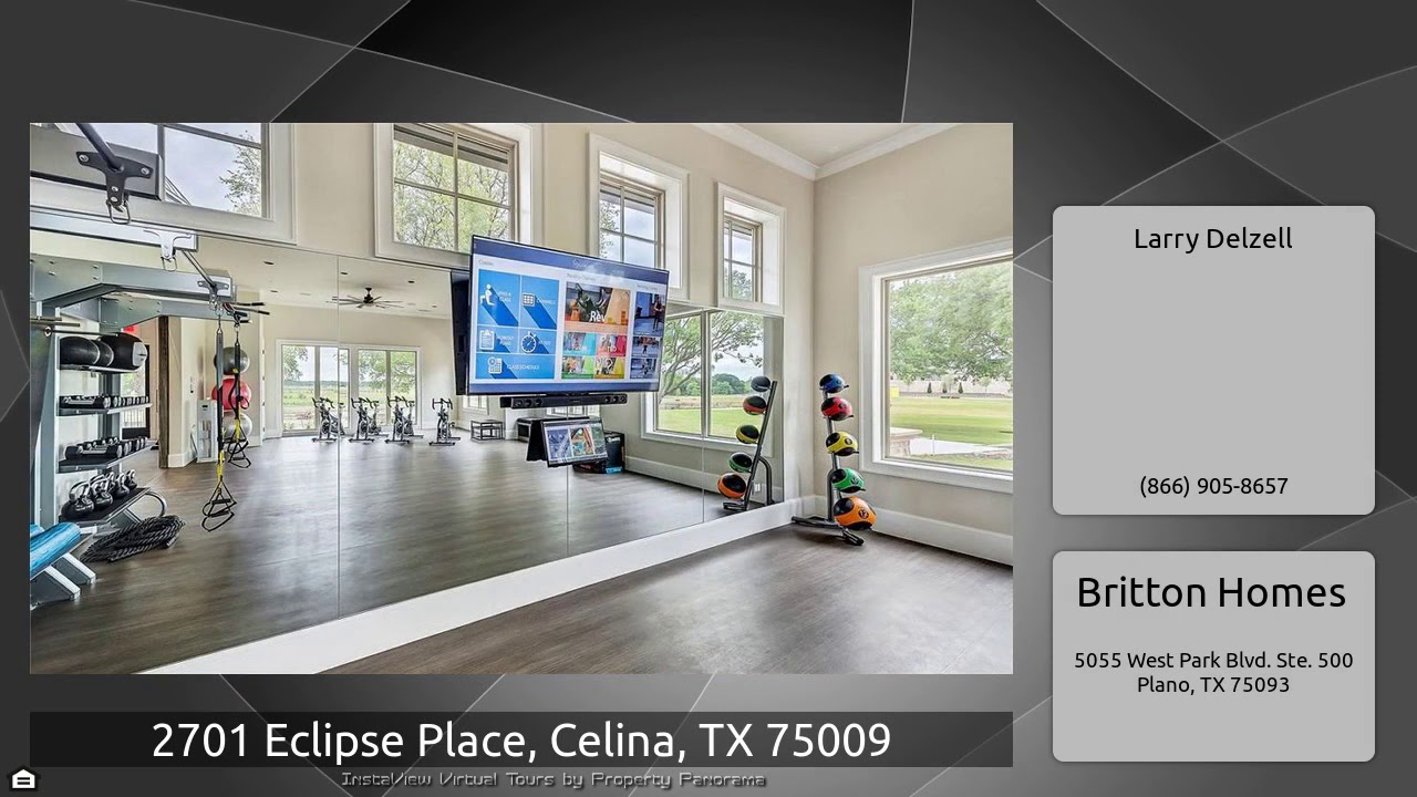 The Virtual Tour for the property at 2701 Eclipse Place, Celina, TX 75009 listed for $599,900: Other homes for sale by Larry Delzell of Britton Homes: BRITTON HOMES NEW CONSTRUCTION READY FOR MOVE-IN!! Mahogany front door. Two-story entry with 20-foot ceiling. Library with French doors set at entry. Formal dining room. Kitchen features an island with built-in seating space, walk-in pantry and Butler's pantry. Morning area features a wall of windows. Two-story family room with a corner fireplace and a wall of windows. Secluded master suite with a wall of windows. Master bath with double door …