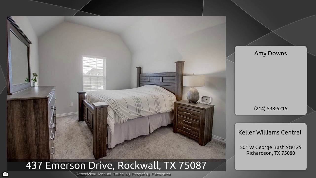 The Virtual Tour for the property at 437 Emerson Drive, Rockwall, TX 75087 listed for $539,900: Other homes for sale by Amy Downs of Keller Williams Central: Don't miss this gorgeous family home located close to shopping, schools and restaurants near downtown Rockwall! Beautiful wood look ceramic tile flooring recently installed throughout downstairs, floor to ceiling stone fireplace with gaslogs in family room and stunning quartz countertops in kitchen with custom cabinets. Study with French doors, formal dining area, game and media rooms. Open floorplan, kitchen has double oven, Butlers …