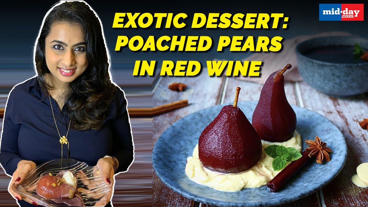 Poached Pears in Red Wine recipe. Make this exotic dessert easily at home. Food blogger Shruti Murdeshwar shows how to make Poached Pears in Red Wine. Watch the video to find out
