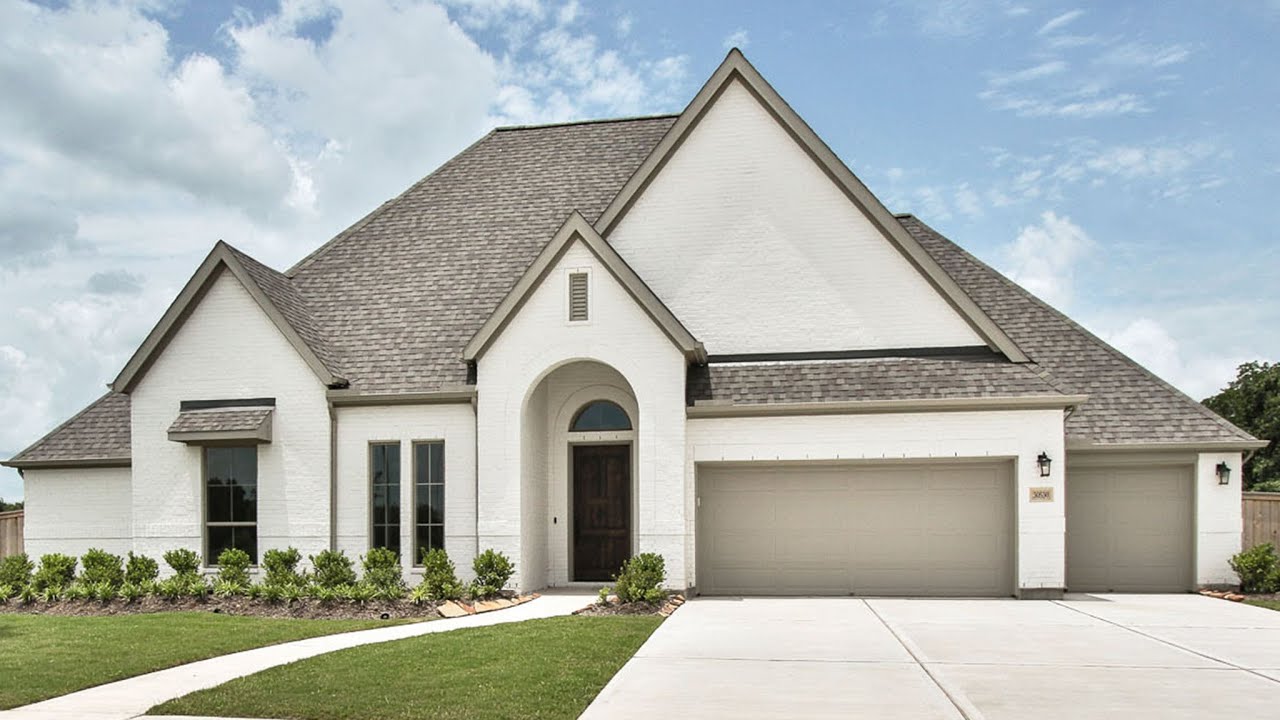 Join us in the rustic community of Fulbrook on Fulshear Creek. With a 24-foot clock tower and gorgeous vistas. This 3478 sq. ft. plan offers four bedrooms, three full bathroom and one half bathroom. Home office with French doors set at entry with 15-foot ceiling. Entry leads to open family room, dining area and kitchen with 15-foot ceilings throughout. Family room features wall of windows. Kitchen features generous counter space, walk-in pantry and island with built-in seating space. Game room with French doors and wall of windows just off kitchen. Primary suite includes bedroom with curved wall of windows. Double doors lead to primary bath with dual vanities, garden tub, separate glass-enclosed shower and walk-in closet with access to utility room. A Hollywood bath and guest suite with private bath add to this spacious four-bedroom design. Covered backyard patio. Mud room off three-car garage. #perryhomes