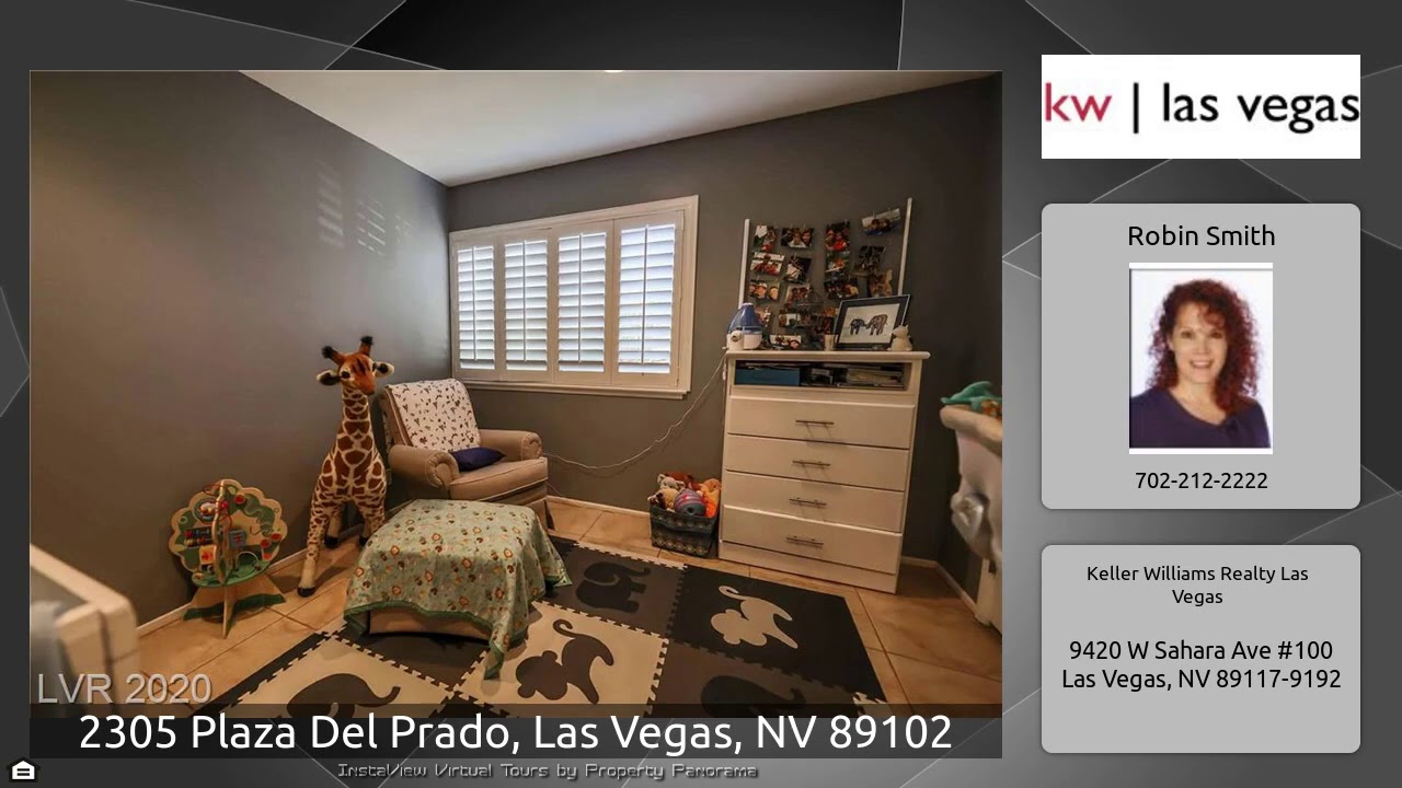 The Virtual Tour for the property at 2305 Plaza Del Prado, Las Vegas, NV 89102 listed for $549,990: Other homes for sale by Robin Smith of Keller Williams Realty Las Vegas: Stunning 3,300 sq. ft. great room plan in Spanish Oaks! Guard gated, 6 pools, tennis, clubhouse, parks & more*Soaring 20' ceilings in great room, ceiling fans, 3 way fireplace, 8' triple French Door*Formal Dining room w/16' ceilings & 8' triple French Door*Formal entry*4 bdrms*3 baths*Bdrm #2 w/covered balcony & walk-in closet*Bdrm #3 w/walk-in closet*Bdrm #4 down w/triple closet*3/4 bath down – fully remodeled*Loft*Mstr …