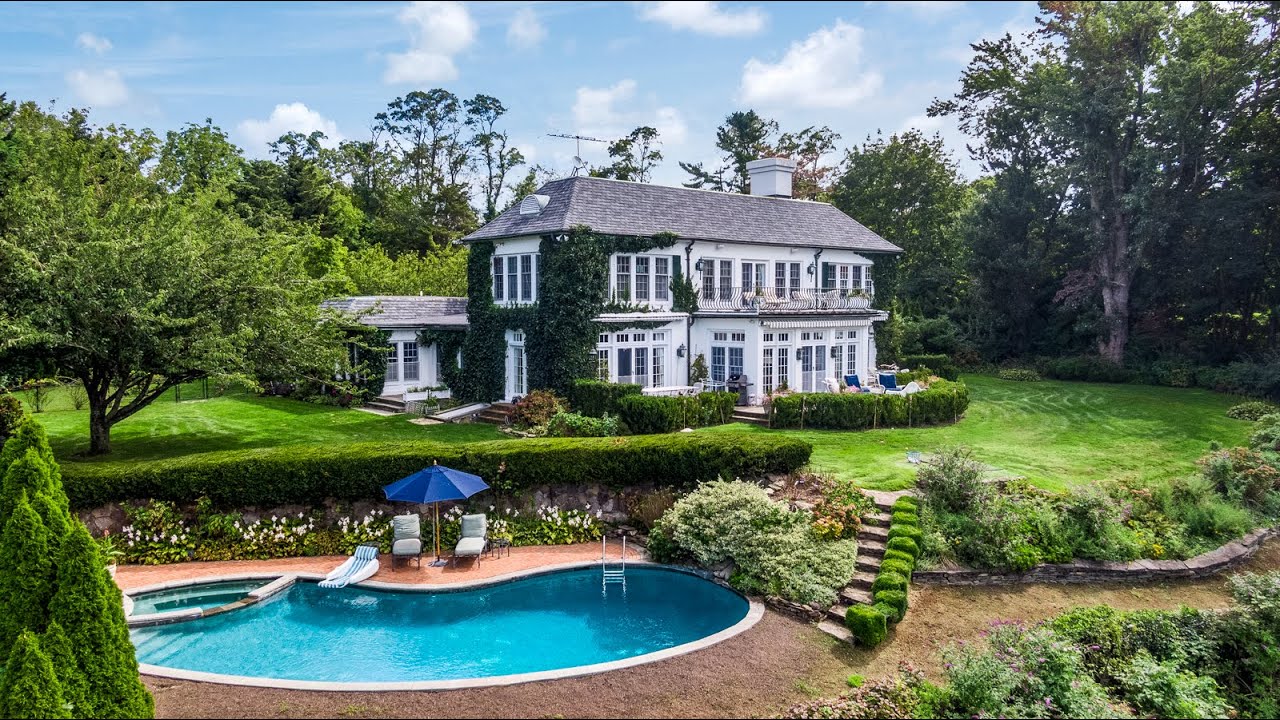 Escape the summer heat of New York City to your own secluded island paradise in this enchanting 3.2-acre waterfront “Great Gatsby” era estate secure in a gated community of grand estates at the tip of the island. Radiating a romantic sense of timeless beauty and impeccably maintained, the four-bedroom, four-and-a-half-bath main house, with its myriad of French doors and windows, sets atop a hillside with spectacular vistas of Oyster Bay. A few steps below it, is an inviting kidney-shaped inground pool with spa and large brick patio, and a little further down at water’s edge, is a delightful guest cottage with deck and dock. At the top of the hill, a large level paving-stone parking courtyard and a neighboring service courtyard, accessing a two-car garage, offer ample parking for guests. Located at the far end of Centre Island, home to many grand homes along with summer cottages here and there, this special retreat is about a six-mile scenic drive around Oyster Bay or about three-fifths-mile boat ride to the quaint village of Oyster Bay, where you can enjoy dining, shopping, and catching the train to the city just over an hour away. The Locust Valley area, known as the ‘New Hamptons” by those in the know, with its many venues for entertainment and sports, is also about six miles away.