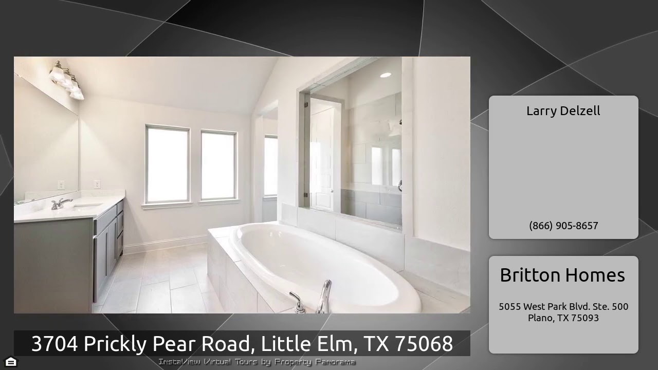 The Virtual Tour for the property at 3704 Prickly Pear Road, Little Elm, TX 75068 listed for $409,900: Other homes for sale by Larry Delzell of Britton Homes: PERRY HOMES NEW CONSTRUCTION! Library with French doors set at entry with 12-foot ceiling. Coffered extended entry leads to open family room, kitchen and dining area. Wood-look tile is featured in entry, kitchen, family room and dining area. Family room features cast stone fireplace and wall of windows. Kitchen features quartz countertop, decorative marble backsplash, corner walk-in pantry and island with built-in seating space. …