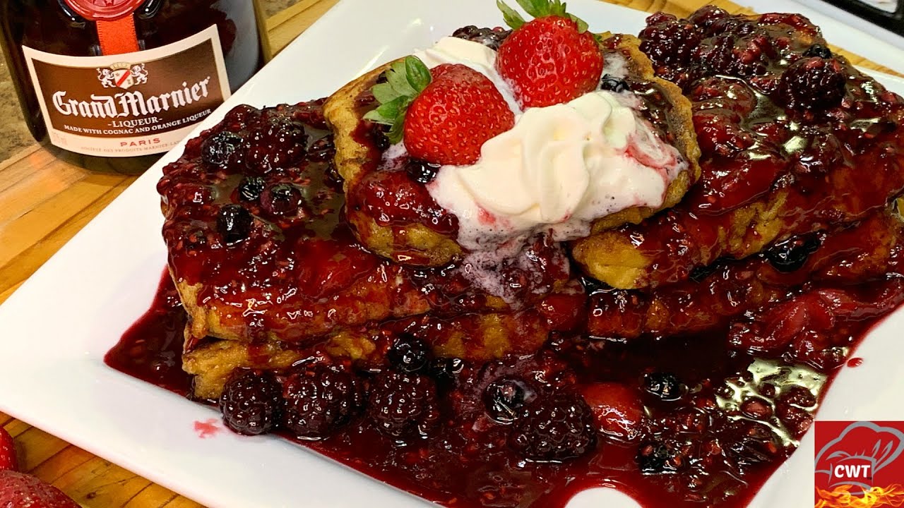 French Toast Best Recipe Ever | Stuffed French Toast Recipe. Apple cinnamon brioche bread soak in a rich flavorful custard. Then covered with orange liquor-infused berries for the ultimate effect.