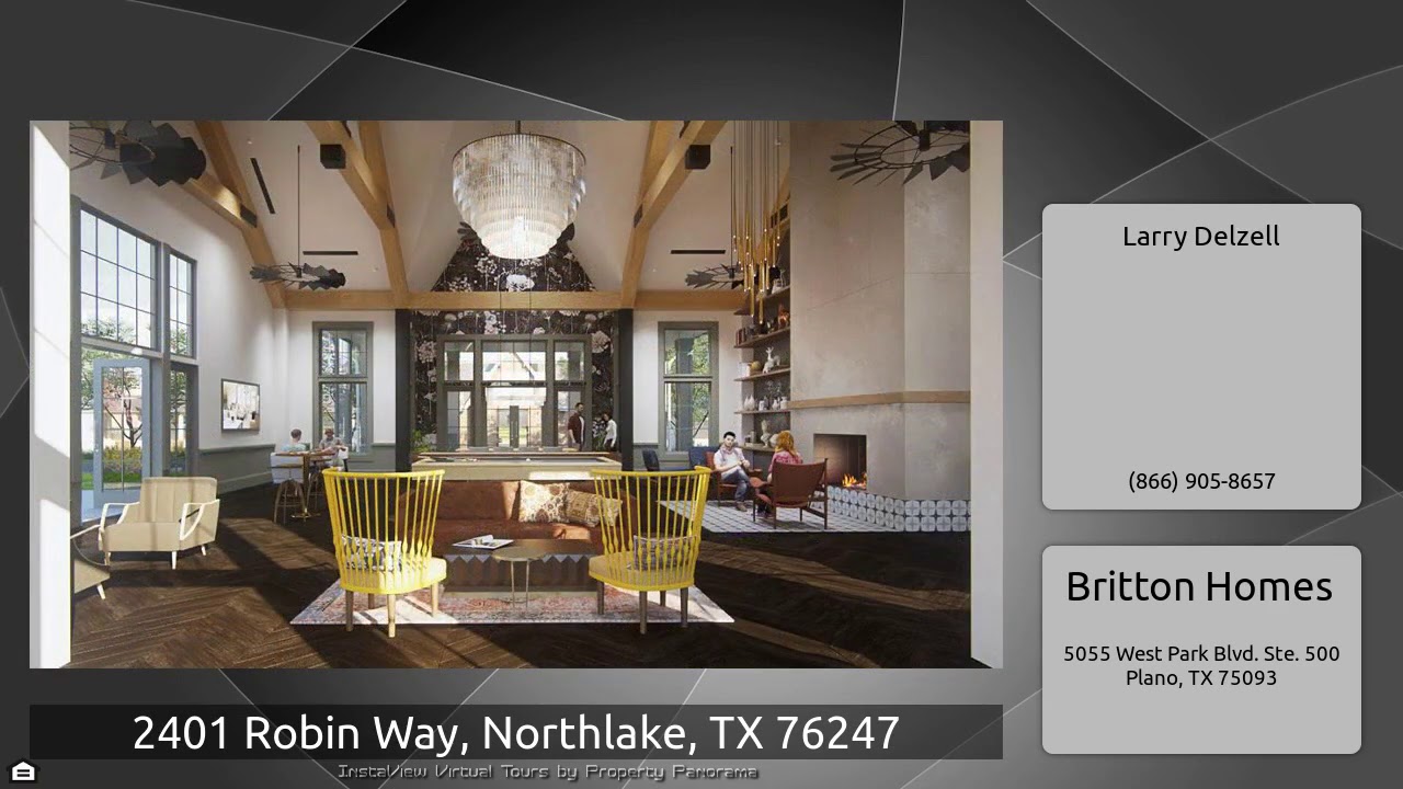 The Virtual Tour for the property at 2401 Robin Way, Northlake, TX 76247 listed for $437,900: Other homes for sale by Larry Delzell of Britton Homes: PERRY HOMES NEW CONSTRUCTION !Corner lot homesite. Extended entry with 13-foot ceiling leads to open kitchen, dining area and family room. Kitchen offers generous counter space, corner walk-in pantry and inviting island with built-in seating space. Dining area flows into family room with a wood mantel fireplace and a wall of windows. Game room with French doors just across from kitchen. Primary suite includes double-door entry to primary bath …