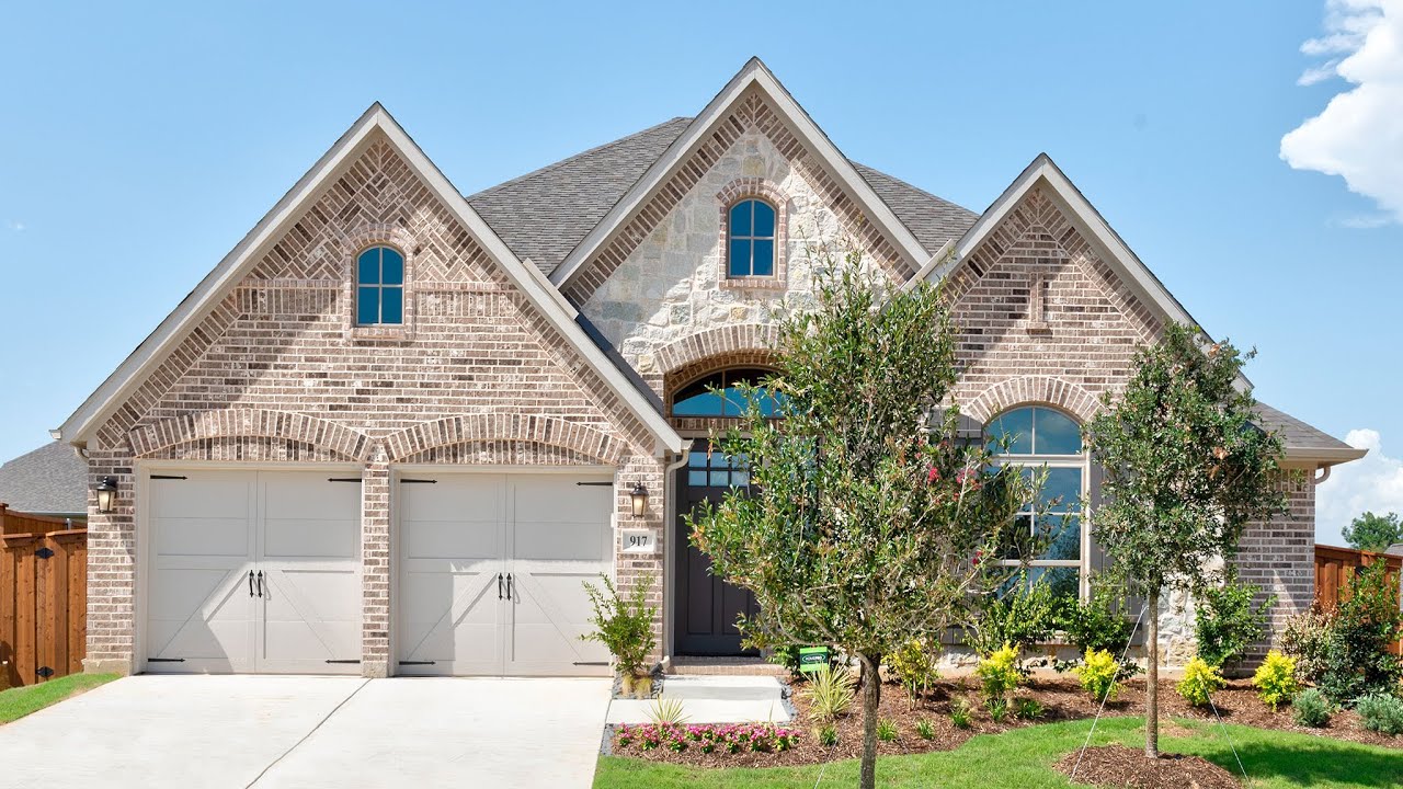 Reserve at Creekside is just five miles from the vibrant city of Denton where you can find a mecca of great food, arts and entertainment. This 2622 sq. ft. plan offers four bedrooms and three full bathrooms. Entry welcomes with 12-foot ceiling. Game room with French doors and formal dining room off coffered extended entry. Family room with wall of windows and wood mantel fireplace opens to kitchen and morning area. Kitchen features inviting island with built-in seating space. Designer tile floors throughout family room and dining areas. Primary suite includes bedroom with 12-foot ceiling. Dual vanity, garden tub, separate glass-enclosed shower and two large walk-in closets in primary bath. Secondary bedrooms feature walk-in closets. Extended covered backyard patio. Two-car garage. #perryhomes