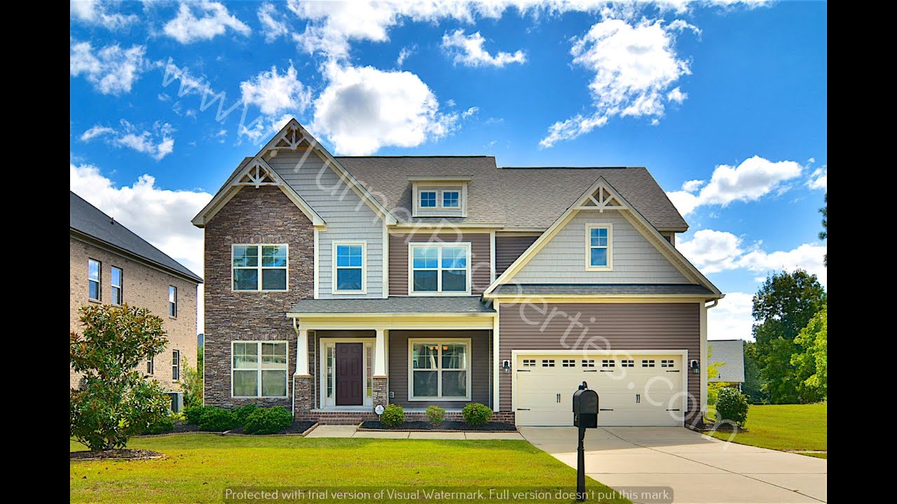 Awesome 5 bedroom, 3 full bath home in the Ashland at Lake Carolina neighborhood in Northeast Columbia. Sits at the end of a cul-de-sac street near community guest parking. Stacked stone and Craftsman-style exterior details, covered front porch, & carriage-style door 2-car garage. Fully fenced backyard with wood deck. Beautiful dark hardwood floors and heavy molding throughout downstairs, granite counter tops in the kitchen and baths. Off the foyer, formal dining room has coffered ceiling and wainscoting, with an arched wall pass-thru in the formal living room. Spacious open-plan family room with a wall of windows, ceiling fan, and gas log fireplace. Sun-filled breakfast area overlooking the deck and backyard opens to kitchen bar seating. Kitchen boasts custom cabinets, tile backsplash, recessed lighting, and pantry. Smooth-top stove, above-range microwave, dishwasher, and French-door refrigerator included. Guest bedroom or office with adjacent full bathroom also downstairs. Wrought iron spindles and wood treads on the stairs to second level. Master suite has trey ceilings, sitting room, and master bath w/ double sinks, garden tub, shower, and walk-in closet. Three additional bedrooms, 3rd full bath, and laundry room w/ utility sink off the hall. Walk to Jeep-Rogers YMCA, easy access to I-77, I-20, Ft Jackson, and Sandhills Shopping. Richland 2 schools.