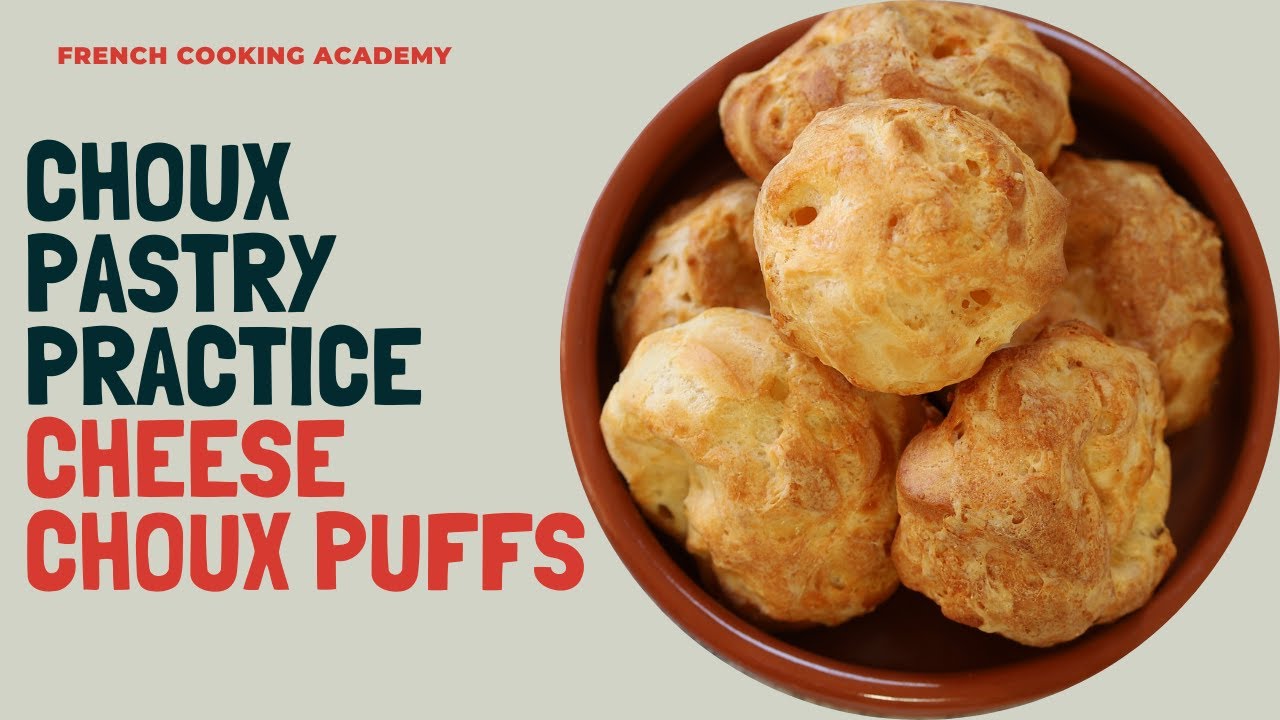 Note: this recipe can be improved by replacing the water by milk and by brushing the choux puffs with egg wash before adding the cheese on top.