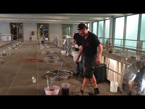 Marble countertop and teal tiled kitchen with a porthole window in a renovated three-bedroom duplex in a former Victorian dairy, North Kensington, west London, UK [2999×2000]