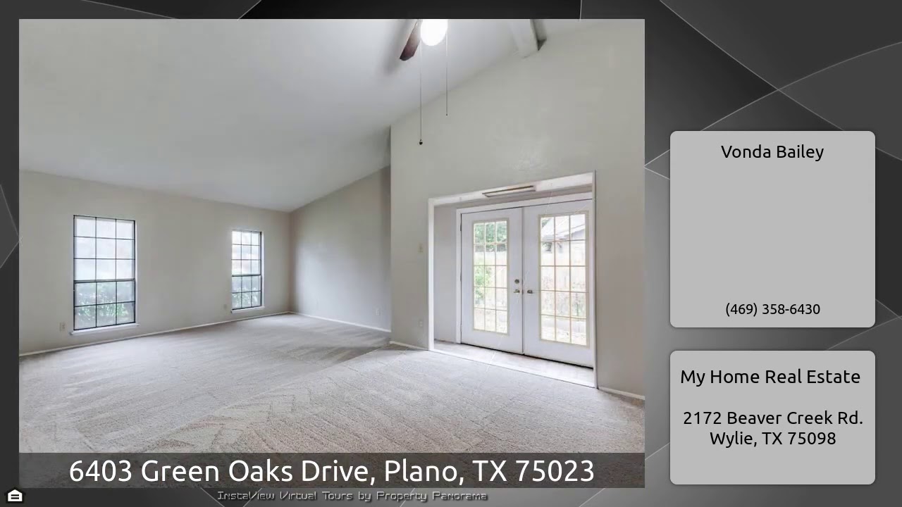 The Virtual Tour for the property at 6403 Green Oaks Drive, Plano, TX 75023 listed for $259,900: Other homes for sale by Vonda Bailey of My Home Real Estate: Lovely one story home in great Plano neighborhood on the cul-de-sac. Spacious front living & dining rooms with vaulted ceilings, wet bar & extra storage. Small sunroom off dining room with double french doors leading to the back yard. Updated kitchen with white cabinets & stainless appliances. Master bedroom has 1 walk in closet and the extra storage room would make a great 2nd walk in closet or office. Master bath has large stand up …