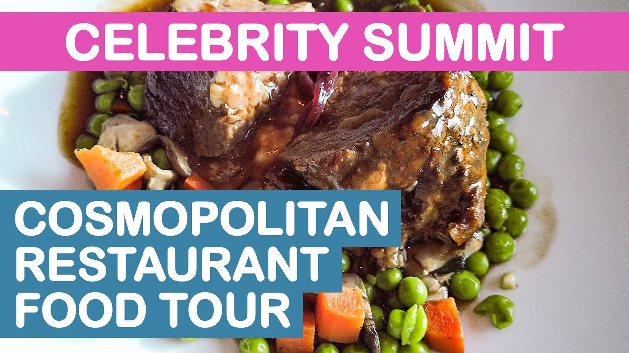 The Cosmopolitan Restaurant is the complimentary main dining room on the Celebrity Summit. The restaurant serves dinner nightly and occasionally serves breakfast and lunch. It is located on decks 4 and 5 aft, at the back of the ship.