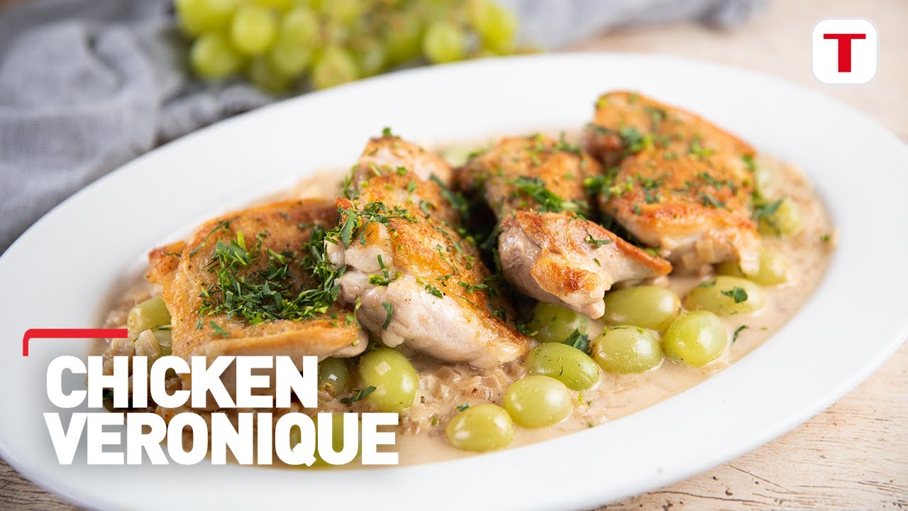 Nothing better to end the French month than with a classic French dish with a very pretty name. Chicken Veronique is basically chicken in creamy wine sauce with the addition of white grapes to make it light and refreshing.