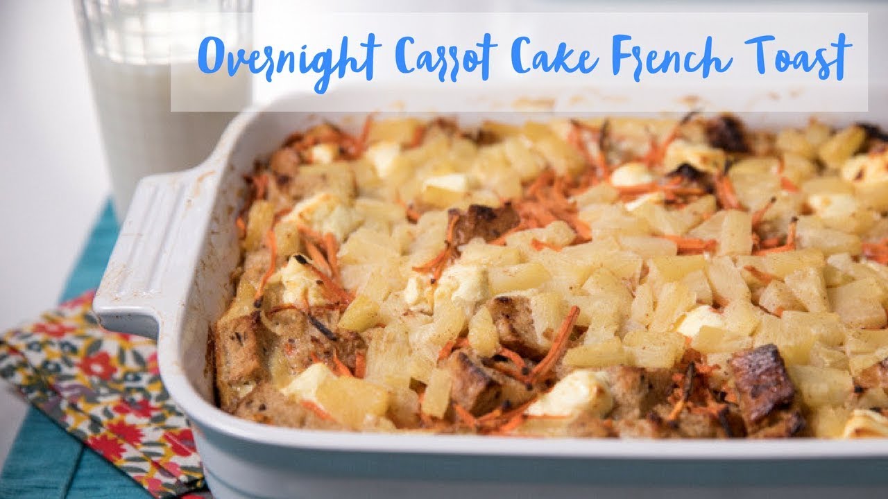 The Dietitian in in loves that this version of overnight French toast is so nutrient-rich and filling—it’s full of eggs (which are loaded full of protein and vitamins and minerals), carrots and pineapple (both rich in nutrients, and adding some natural sweetness). I used whole grain French bread (a couple days old is best), to boost the nutrition factor even more, but you can use white if you prefer. This recipe is perfect for a crowd on Easter morning (or any morning), or makes for a great weeknight dinner option too.