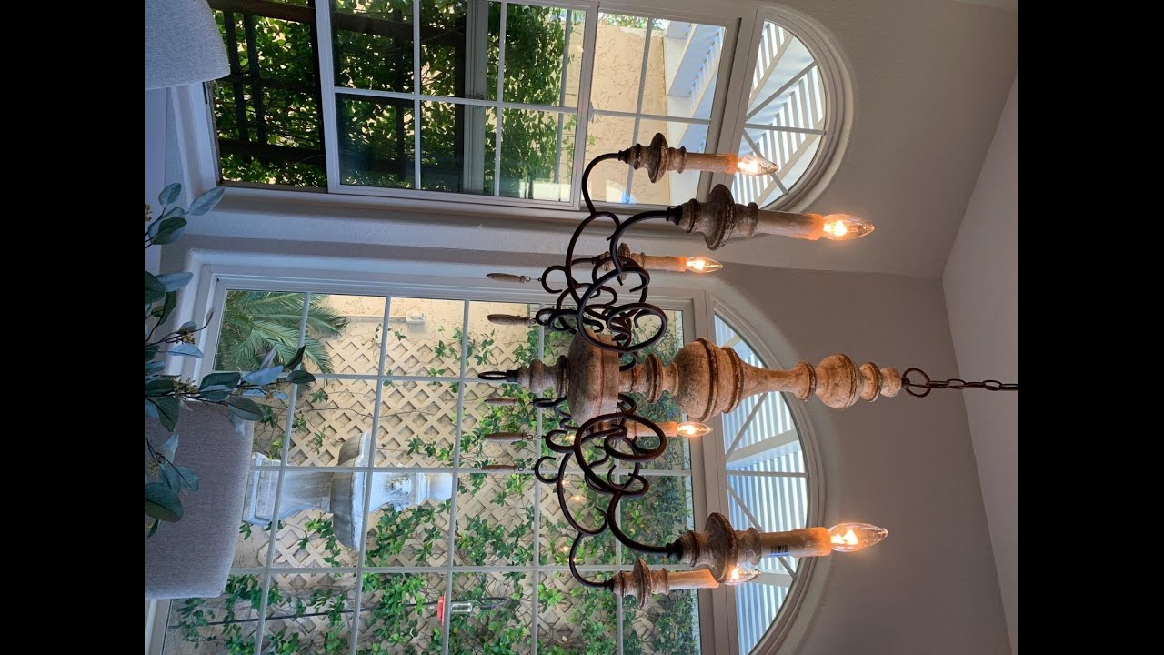 – LNC A03371 Farmhouse Wood Chandelier, Handmade French Country Lighting for Living Dining Room, Kitchen, Foyer